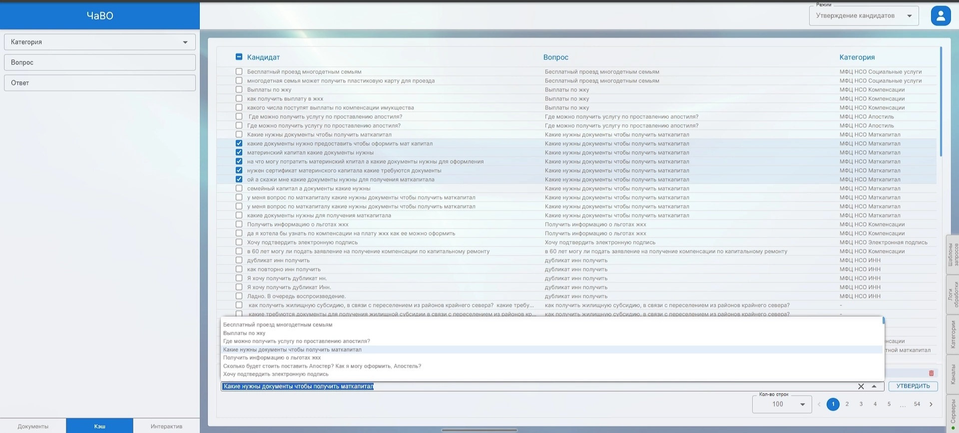 Работа в режиме Утверждение кандидатов