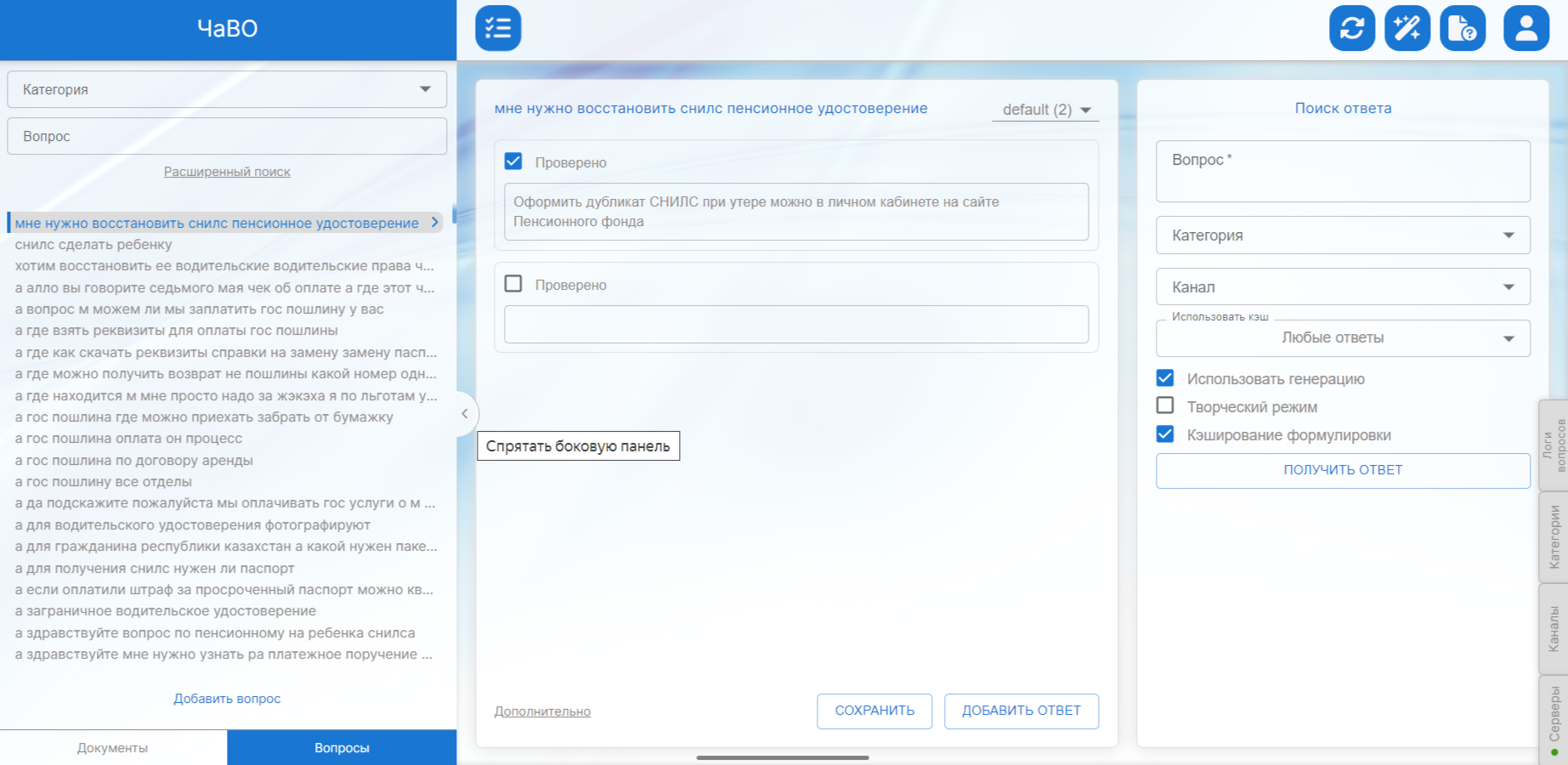 главная страница вкладки вопросы