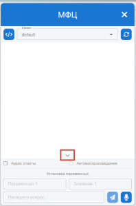 Робота можно протестировать, задавая вопросы голосом и/или вводя переменные. Например, можно проверить, как робот отправляет в разные конечные точки, получая одинаковые метки от SMC и номера телефонов различных ведомств. Например, метка «Мобилизация» от SMC в сочетании с номером телефона МФЦ приводит в КТ Консультация ЧаВО, а «Мобилизация» и номер единого контактного центра (ЕКЦ) — в КТ Перевод на оператора. Чтобы провести тестирование робота с переменными раскройте меню, кликнув на стрелочку над полем «Напишите вопрос» (рис. 22) и заполните поля: