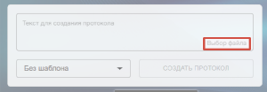 Снизу экрана вы найдете форму для отправки текста на протоколирование (см. рис. 18). Для загрузки файла или текста на протоколирование воспользуйтесь кнопкой «Выбор файла», расположенной в правом углу, которая появляется в правом углу при наведении курсора на соответствующую область. Обратите внимание, что файл должен быть в формате.txt. Или можно скопировать текст документа и вставить его в блок «Текст для создания протокола».